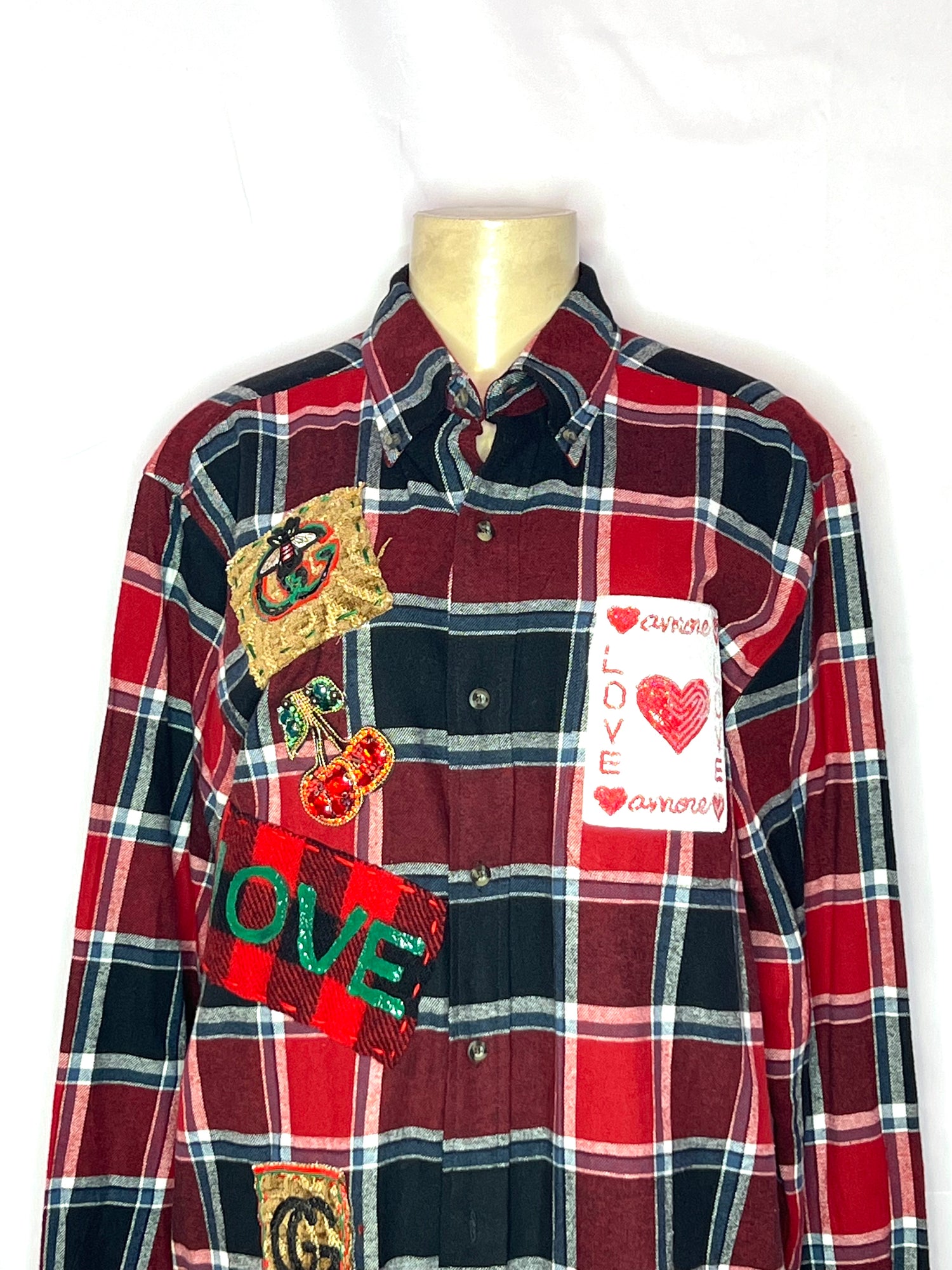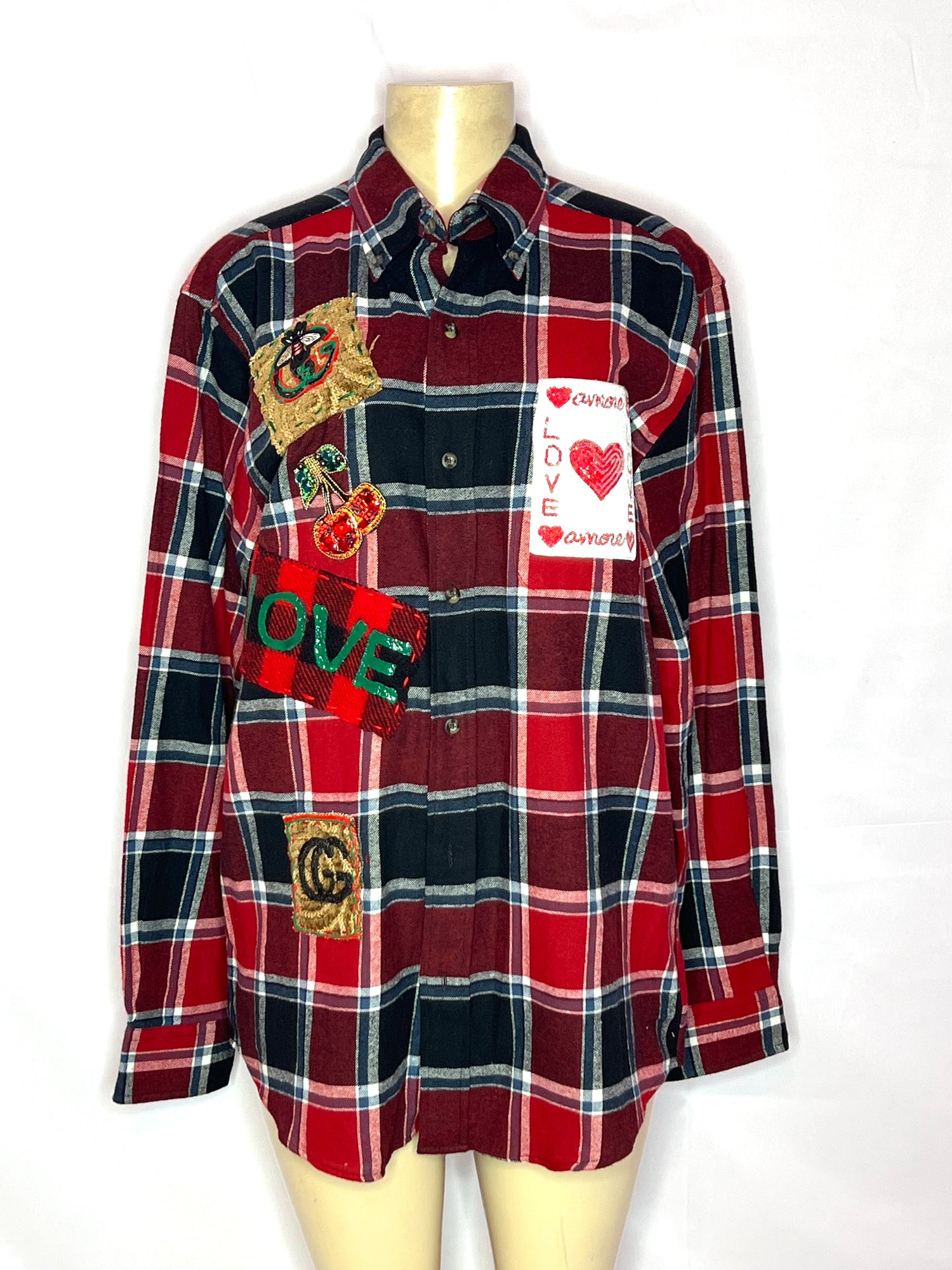 Amore long sleeve red and blue multi color 100% cotton flannel button down custom
