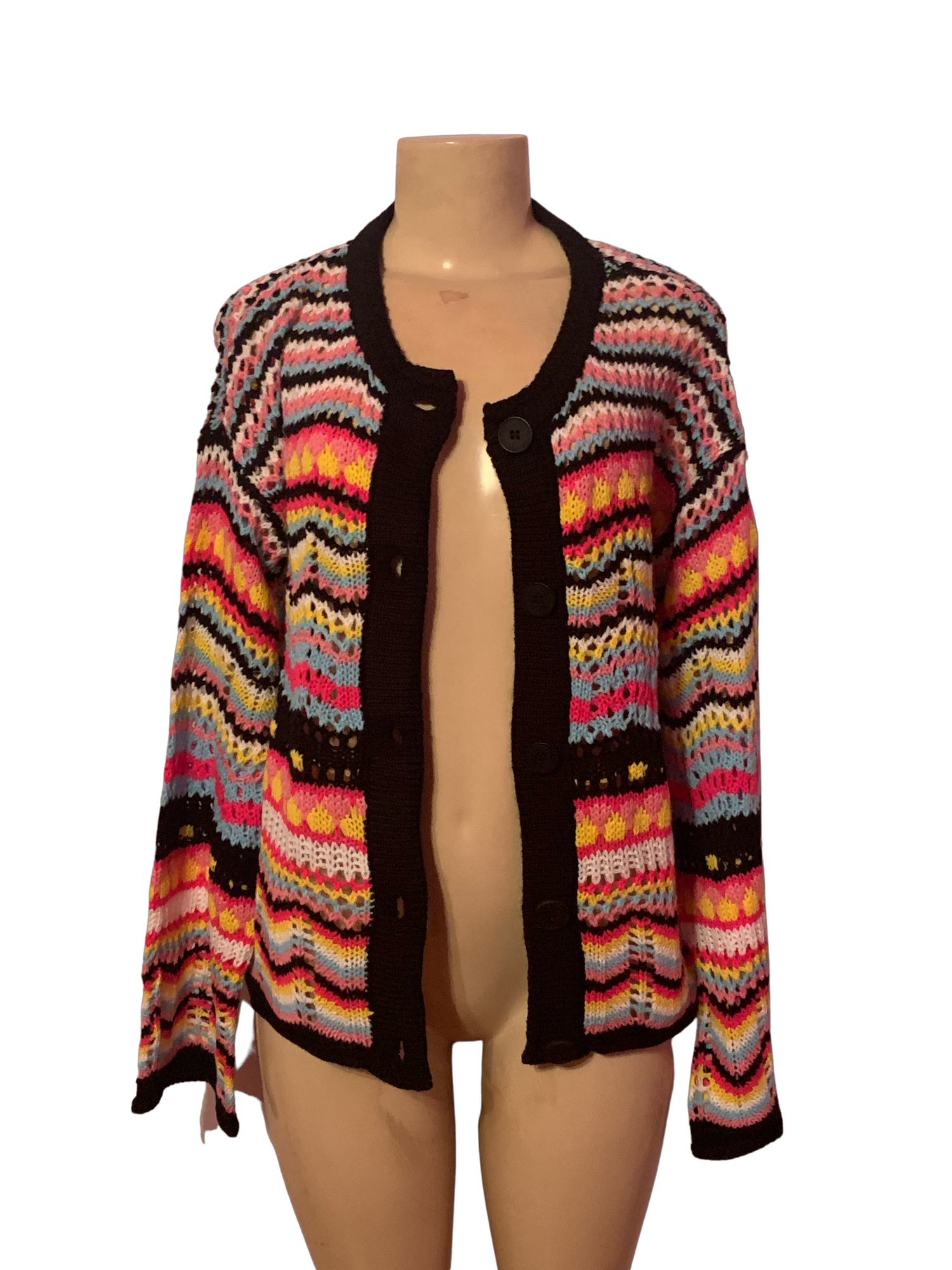 Anna-Kaci Knitted Womens Boho Cardigan Crochet Sweater Size XL