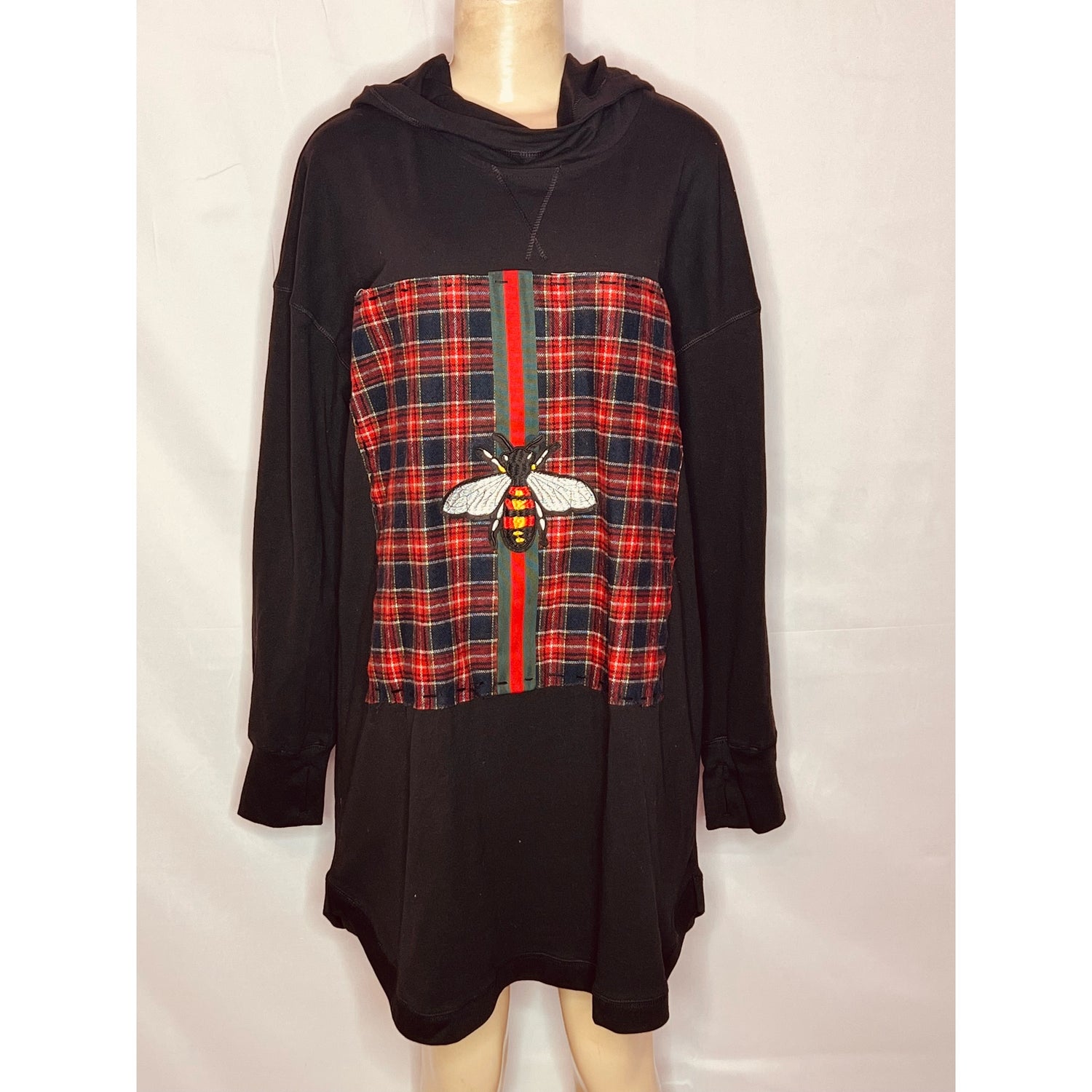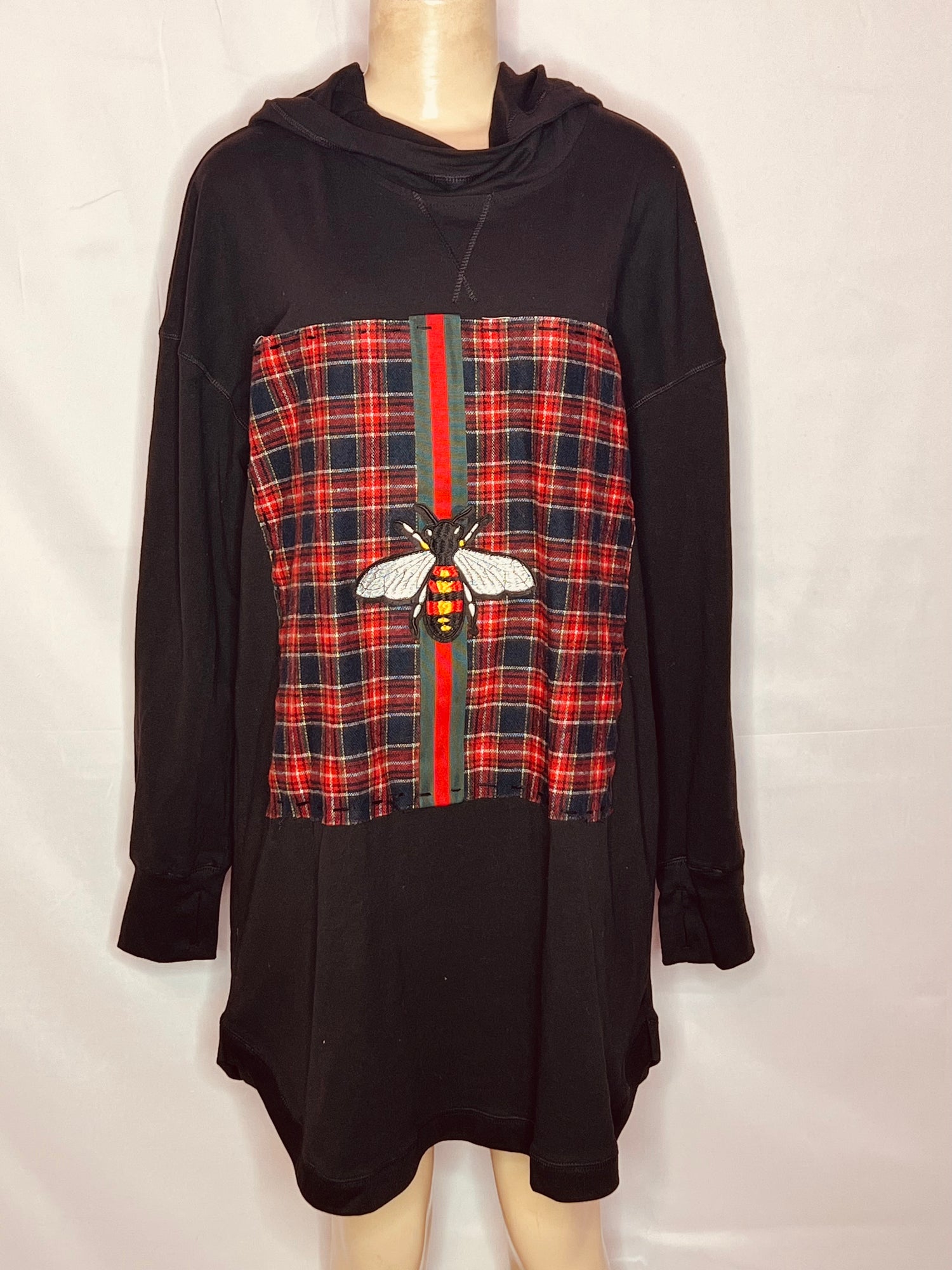 Black hooded sweatshirt dress w/red plaid design size Xlarge