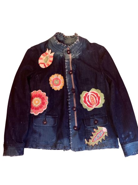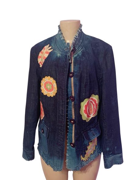 Eclectic Multi-color distressed button down denim jacket size Large