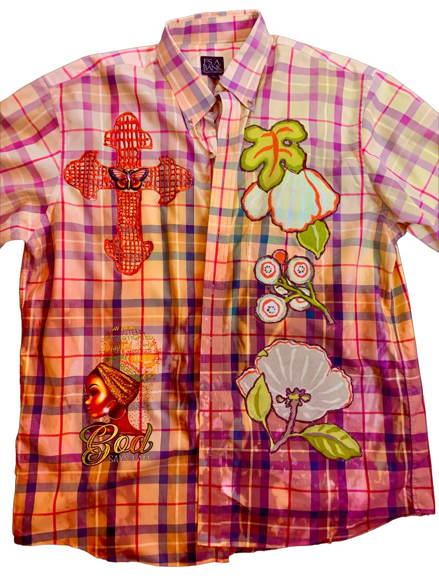 Flannel dyed oversized plaid shirt “She is a Dope Soul”