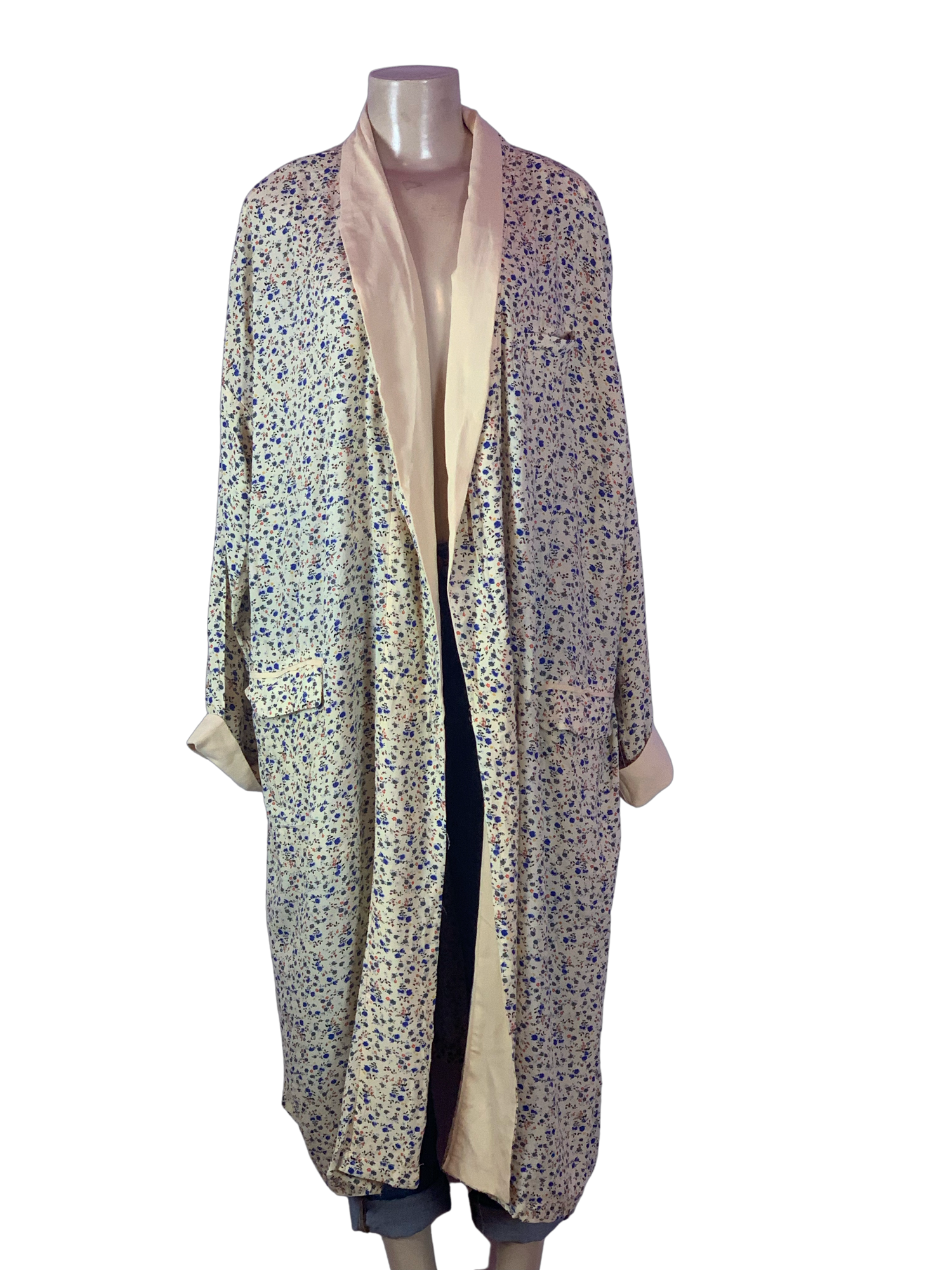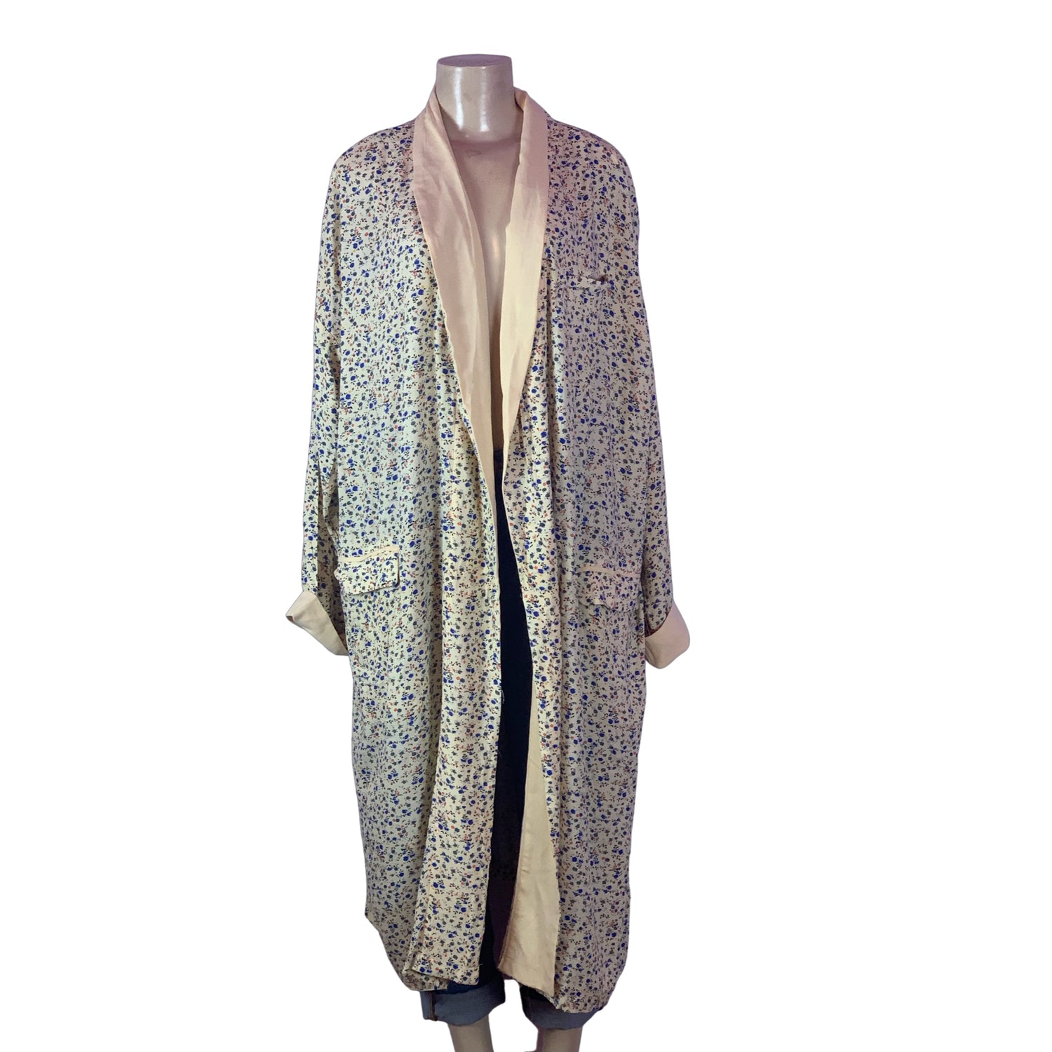 Free People soft yellow floral long sleeve open front duster with solid lapels 100% Viscose