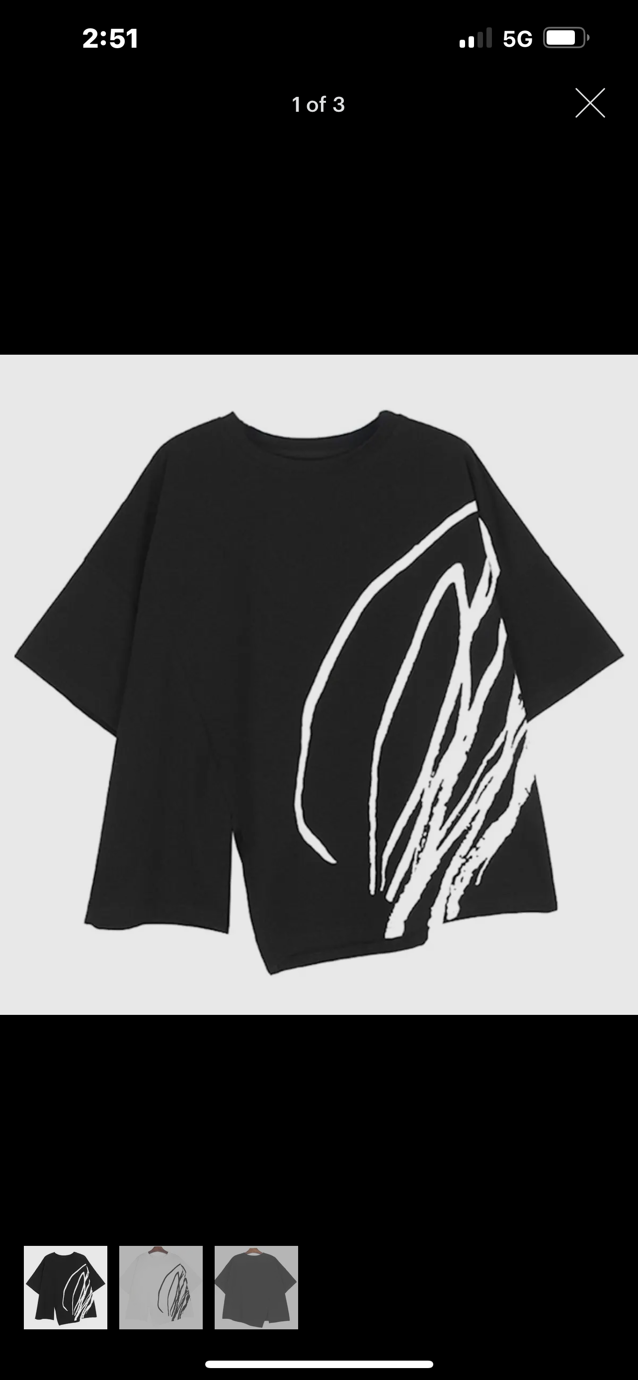 Madonna & Co black stretch relaxed fit abstract design top. Cotton spandex blend