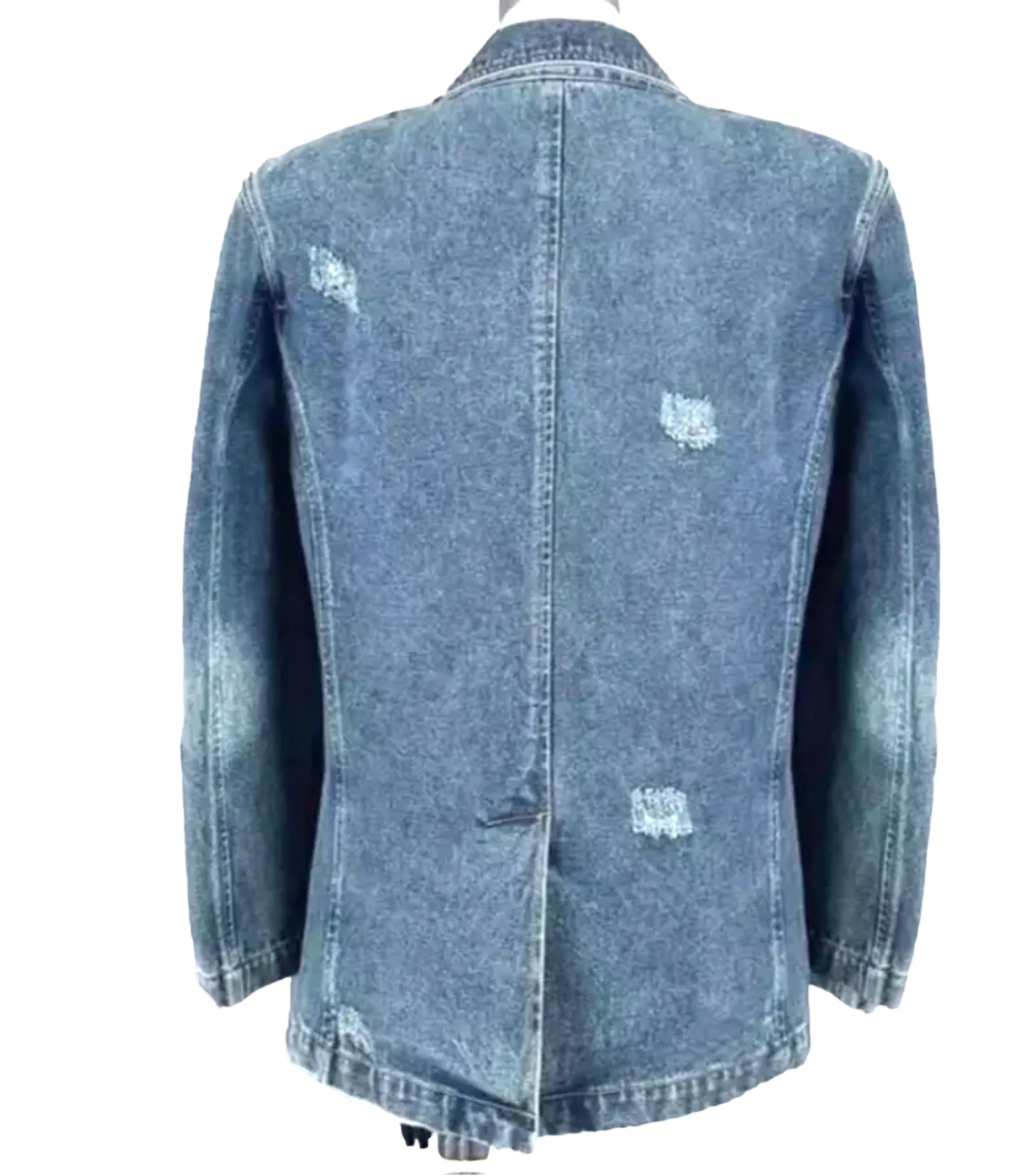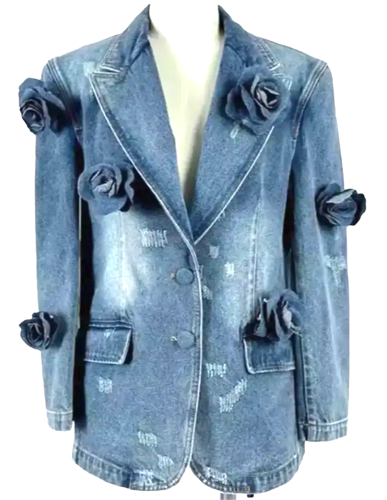 Madonna & Co Blue denim jean distressed blazer w/removable rosettes