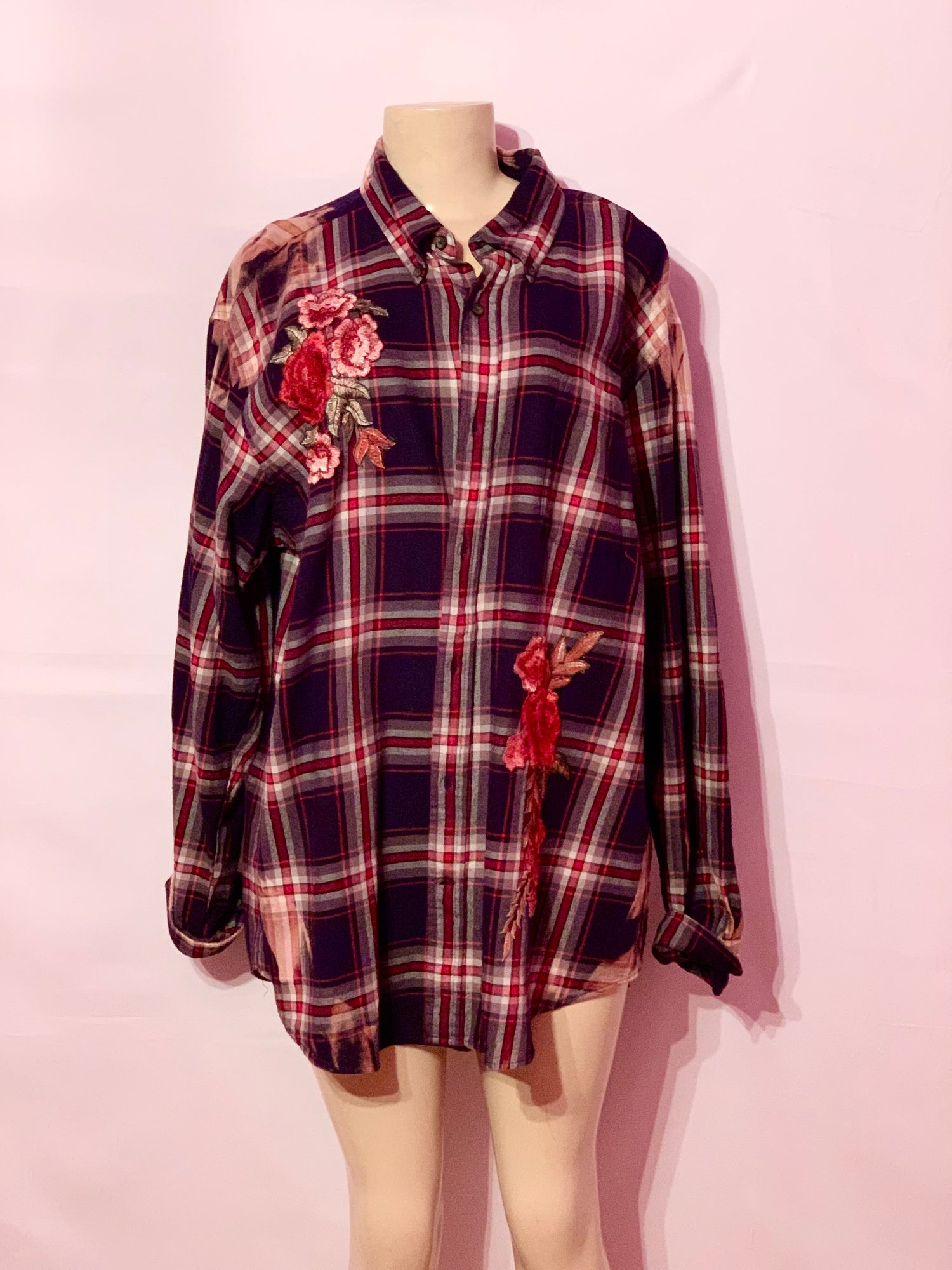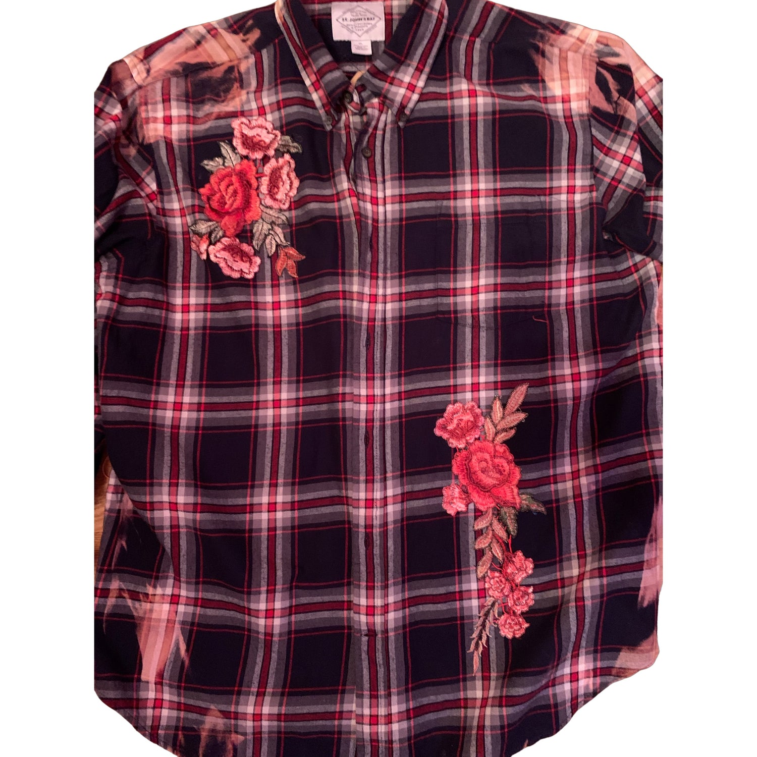 Navy Blue dyed “Rose” designed flannel shirt XL