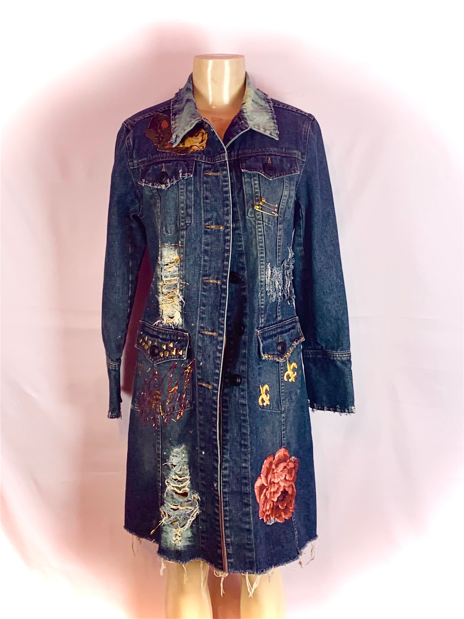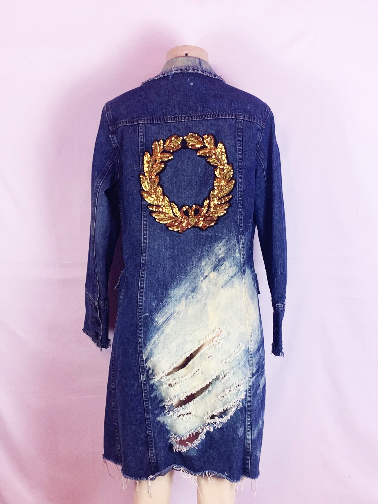 Vintage denim Jean long duster. Royalty theme. 100% Cotton Item should ne spot cleaned only.