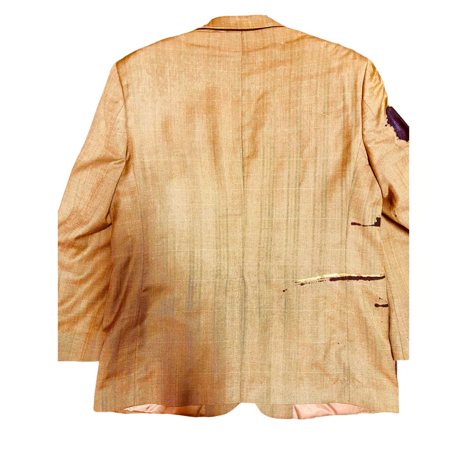 Silk woven blazer with accents of red black and metallic gold perfect for a Night Out 50% silk 50% wool